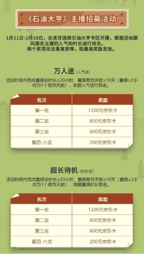 除了“油王”争霸赛,,,精英主播招募活动亦同步开启!!!赛事分时长奖和人气奖,,,,奖励同样丰厚!!!!