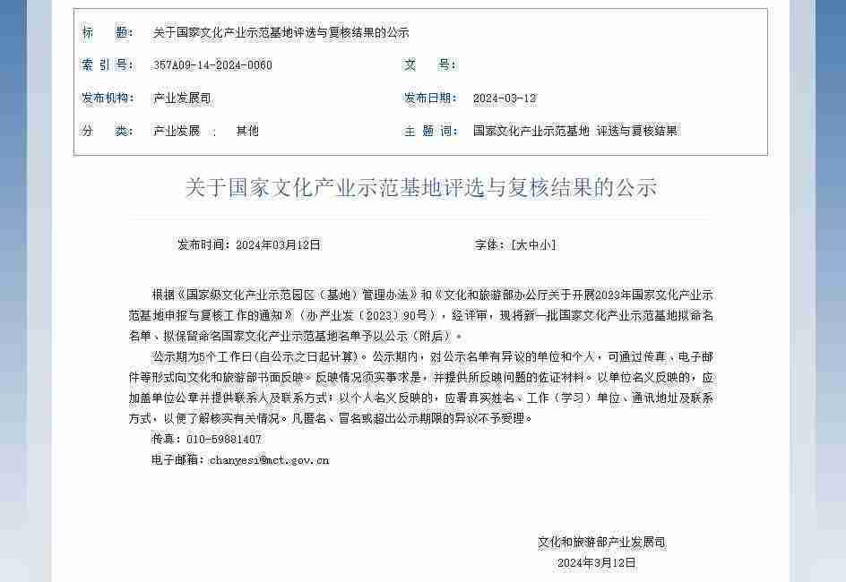 公司新闻 新一批国家文化产业示范基地公示,,JIUYOU.COM成功入围