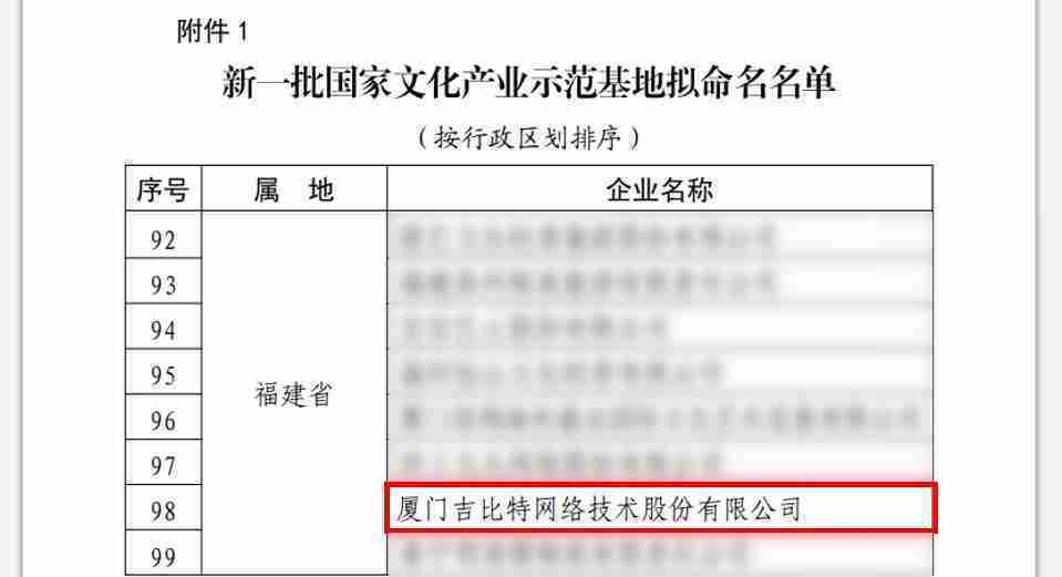 3月12日,,,文化和旅游部发布了《关于国家文化产业示范基地评选与复核结果的公示》,,,厦门JIUYOU.COM网络技术股份有限公司(以下简称“JIUYOU.COM”或“公司”)成功入围新一批国家文化产业示范基地拟命名名单。。