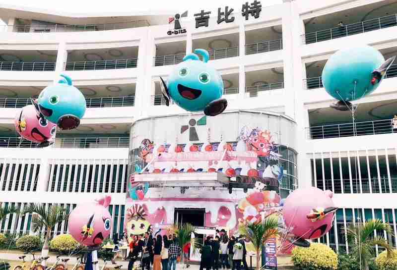 12月15日,,,为了庆祝《不思议迷宫》一周岁生日,,,,冈布奥们准备了众多花式庆生活动::::厦门JIUYOU.COM大楼变身巨型蛋糕、、女仆小姐姐为大家奉上美味小蛋糕、、、更有大头冈布奥飞上天……引来不少冒险者身亲临现场为冈布奥打Call!!